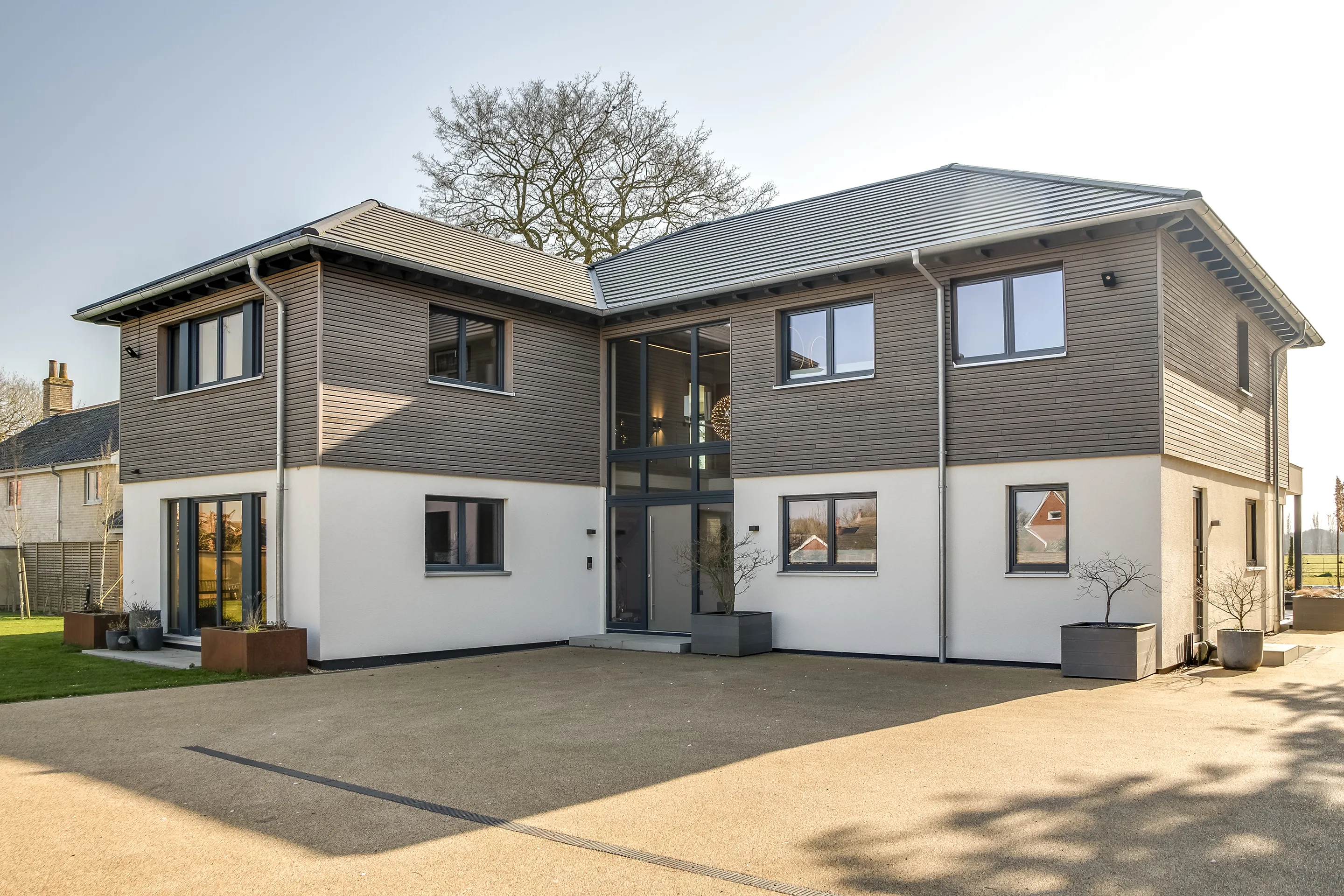 Bauhaus style timber frame villa with brick slips