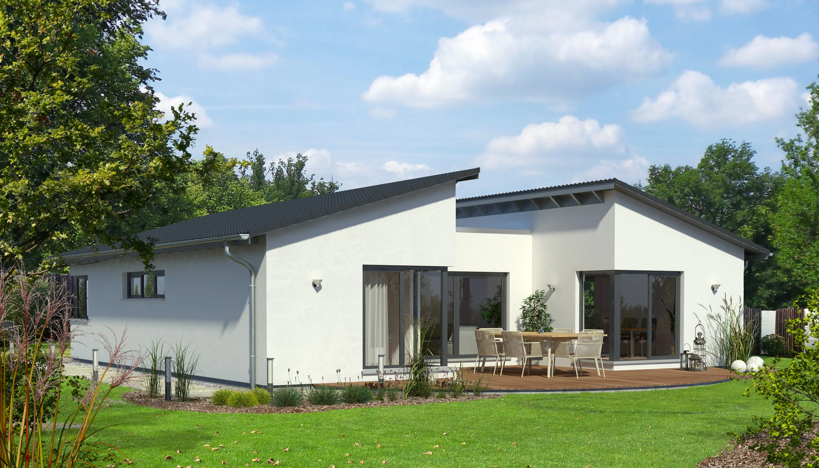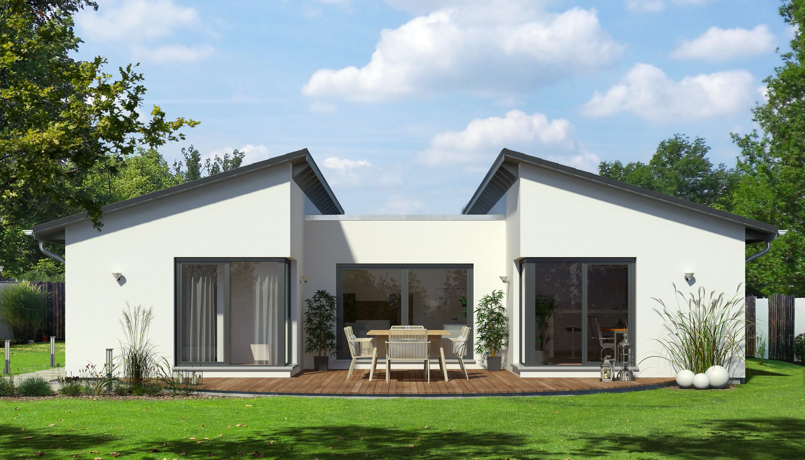 This new Meisterstück -HAUS design has 3 bedrooms, 2 bathrooms and a light-filled living area on a compact footprint - a modest house size with a functional, well organised internal layout.