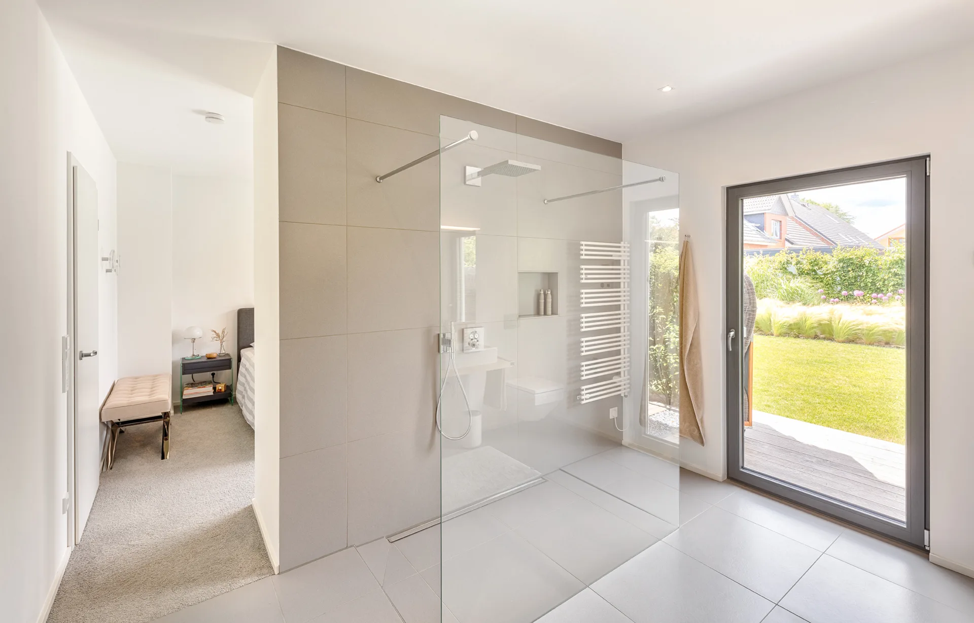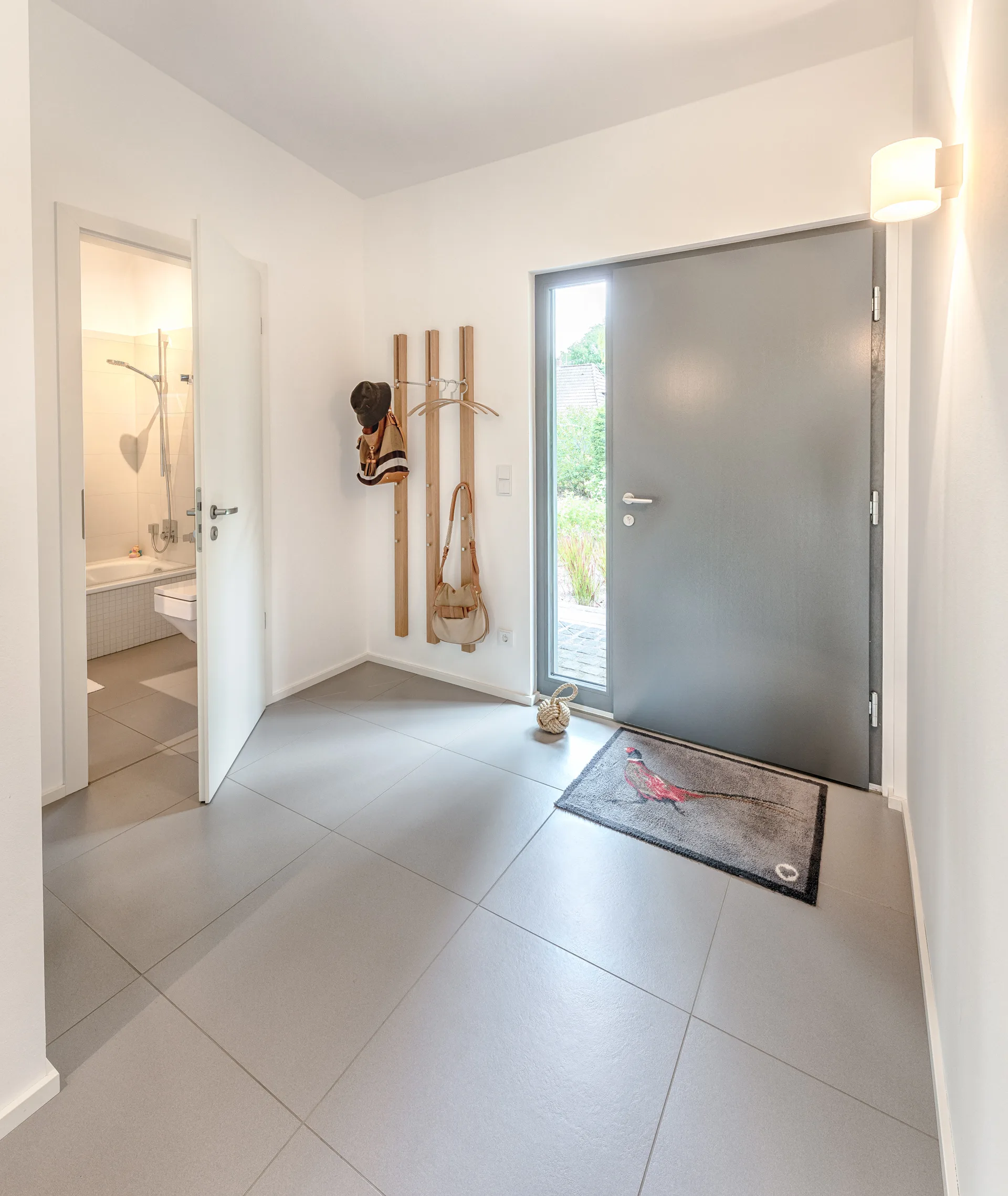 This MIDSUMMER bungalow was individually designed and built as a holiday home at the customer's request. The single-storey monopitch roof bungalow with adjoining carport and partially covered wooden terrace is a mix of post and beam and closed panel construction and offers pleasant comfortable living for 2-4 people on over 100 square meters of living space.