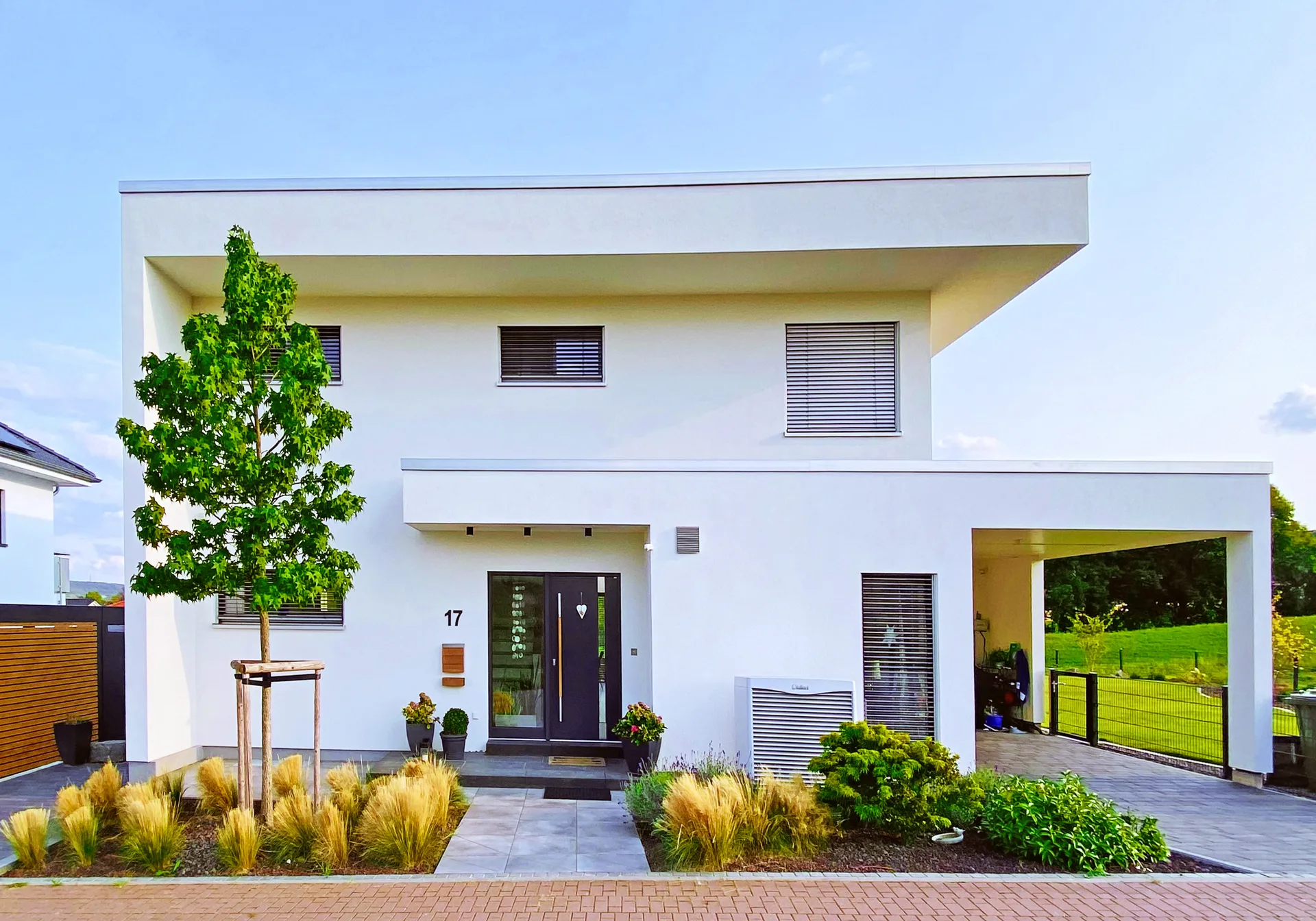 This detached house variant of the ‘FUSION’ architectural line, which combines design elements of Bauhaus architecture with post and beam construction, was realised on a basement with carport in a rural community in the Rhine-Neckar district. The south-facing, fully glazed gable allows plenty of daylight into the house, which has around 193 square metres of living space for the family of four.