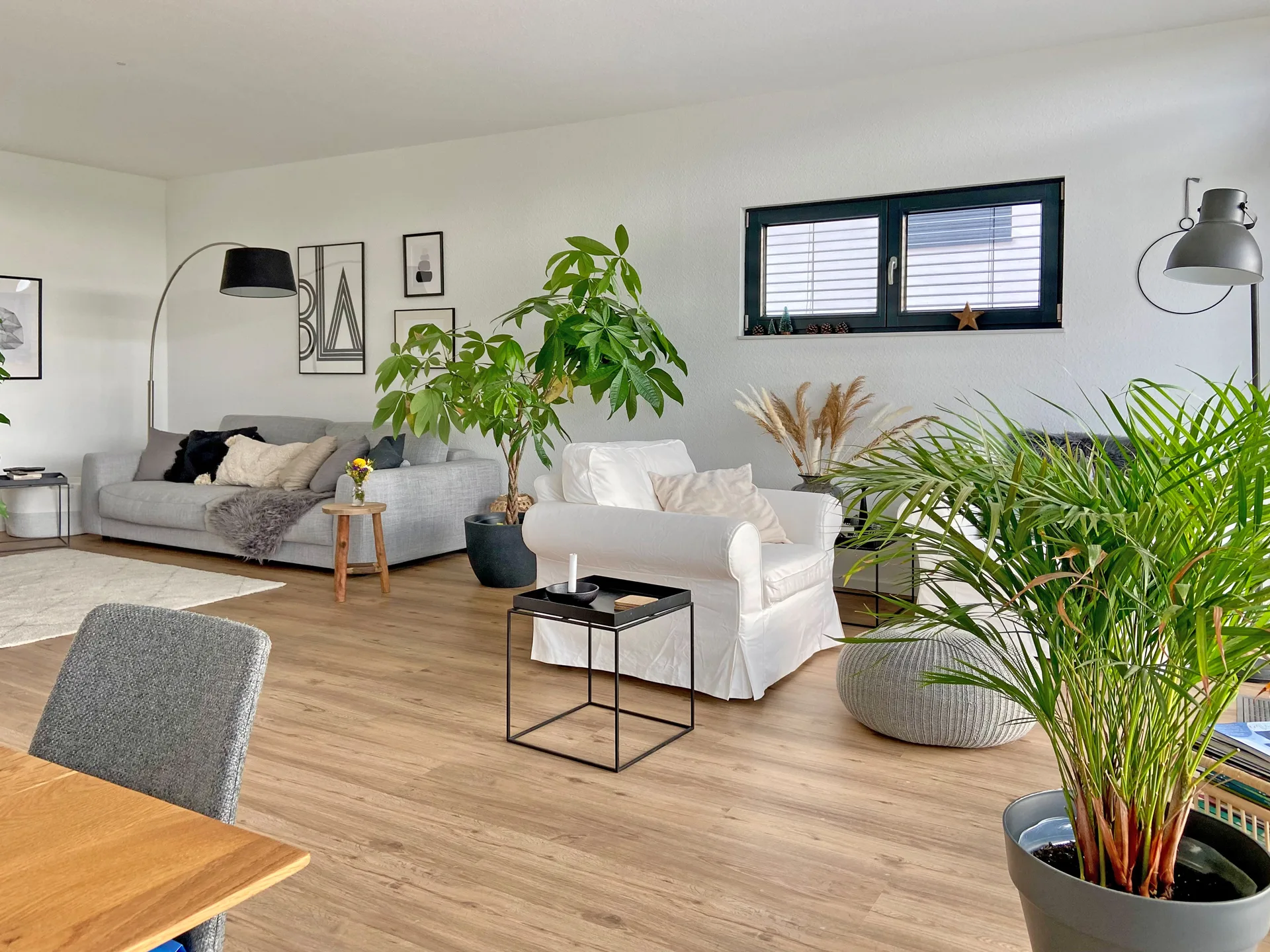 All technology can be found in the utility room in the basement, which also houses two additional large rooms for hobbies and leisure activities. An air source heat pump, a ventilation system with heat recovery and a photovoltaic system ensure the necessary energy efficiency and the greatest possible self-sufficiency in terms of gas and electricity.