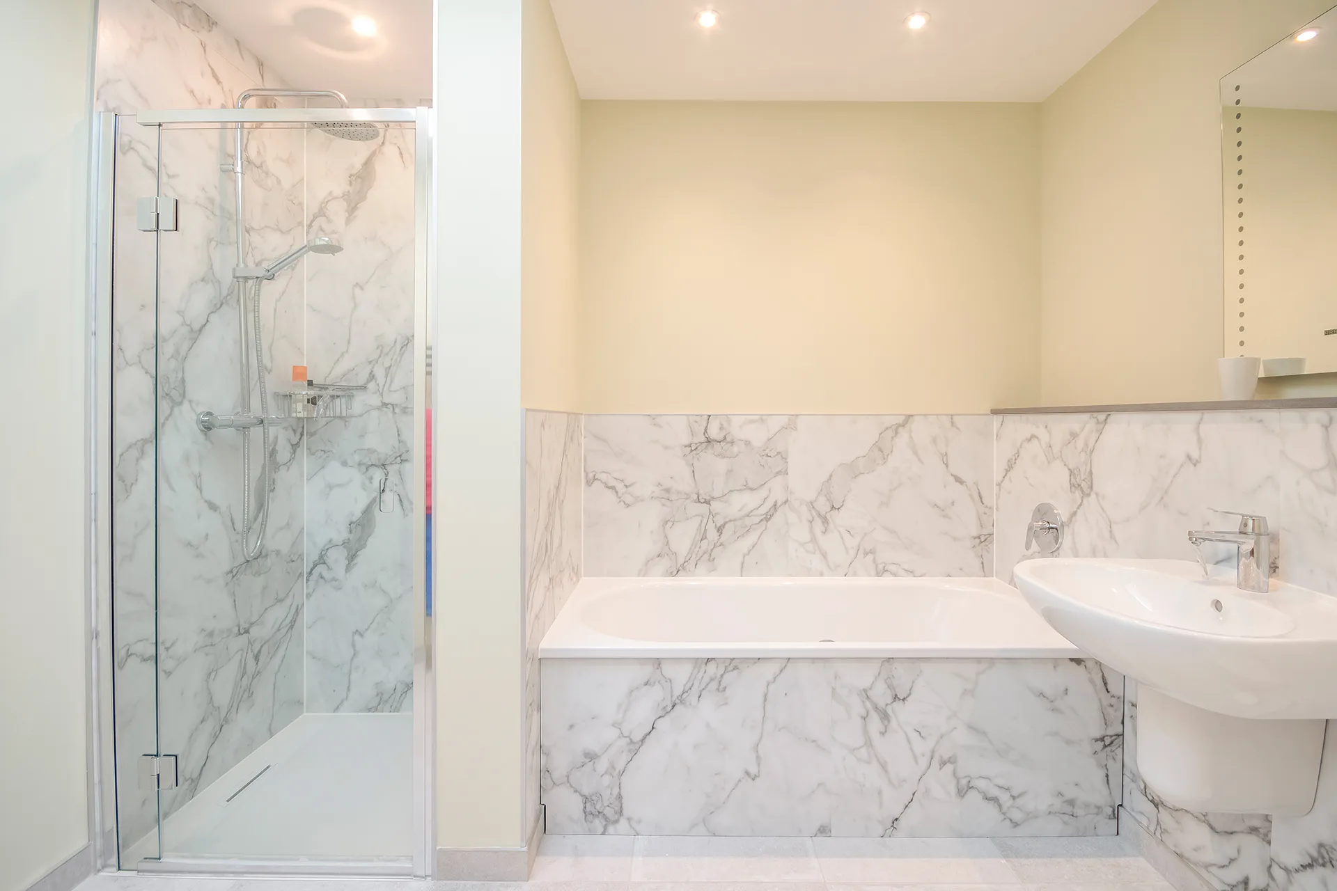 On the east side of the hallway is the open plan kitchen/dining/living area and snug, and on the west side are the bedrooms. A master bedroom with ensuite, a further 3 bedrooms, one with ensuite, and a family bathroom make up the bedroom wing.